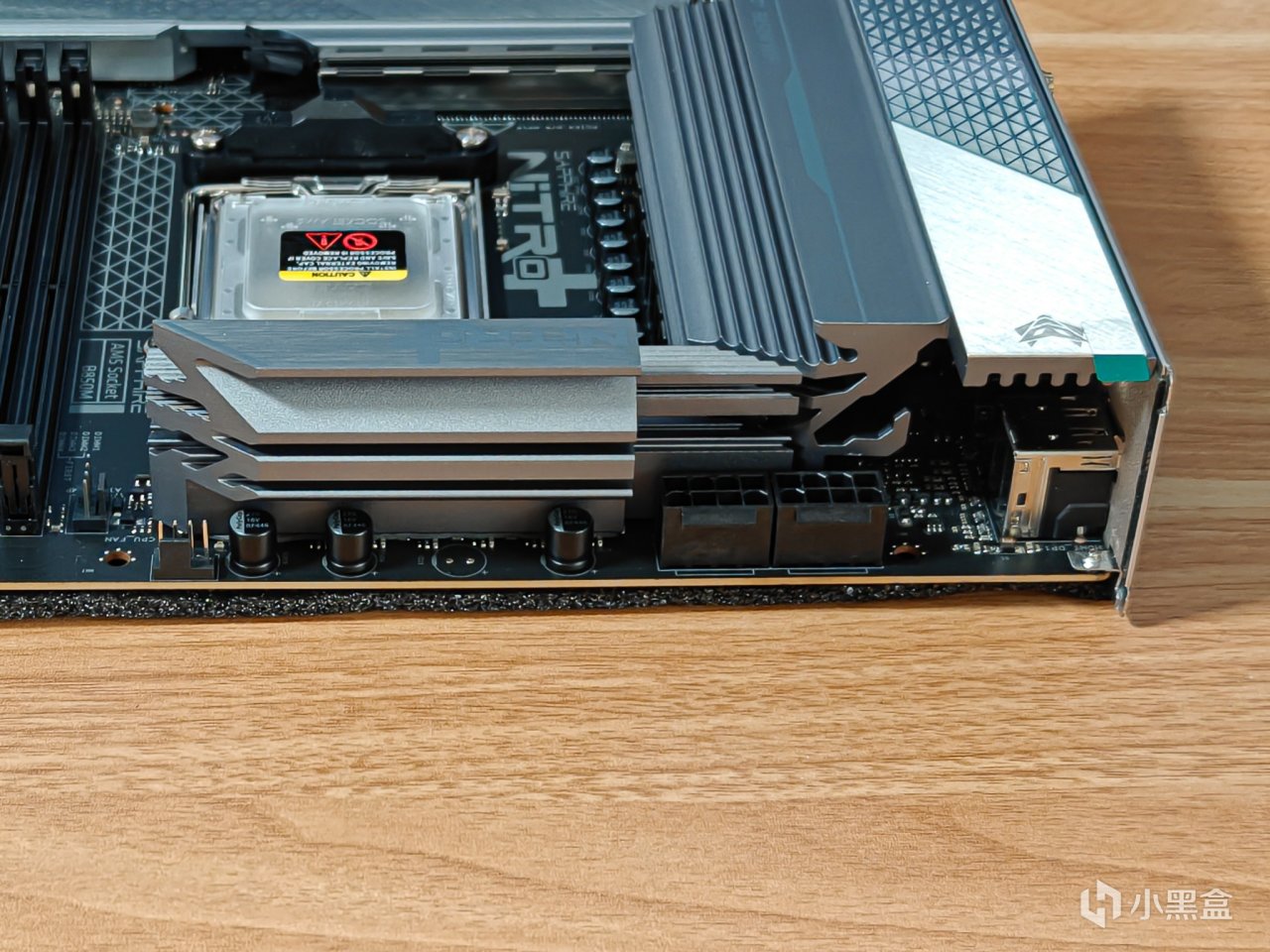 板子雖小,供電強大。這款主板採用了12+2+1路智能供電,最高可以支持AMD R9 9950X。VRM散熱片採用了褶皺式設計,而且褶皺密度較大,包括散熱片表面也是溝槽式的,總體散熱面積增加很多。