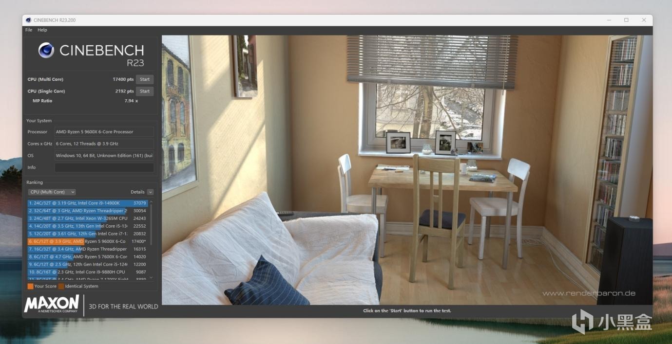 CINBENCH R23測試,多核提升到了17400,單核也有增加是2192。而原來默頻的時候,多核得分16010,單核2097。