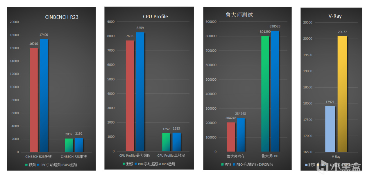 我們通過一張圖表,來更加清晰的看出,默頻和超頻之後的變化。