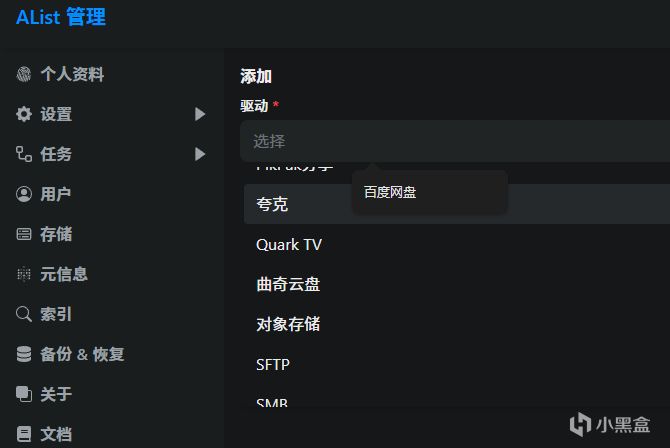 接下来是将你需要的网盘挂载到AList中。具体步骤官方文档这里给出来详细的过程。