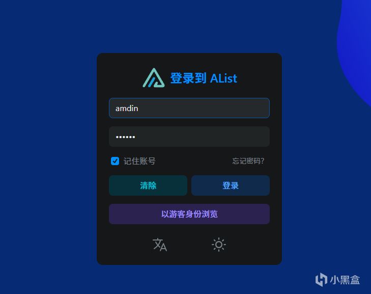初始用户名为admin 密码为刚才保存的。登录后可自行修改密码。