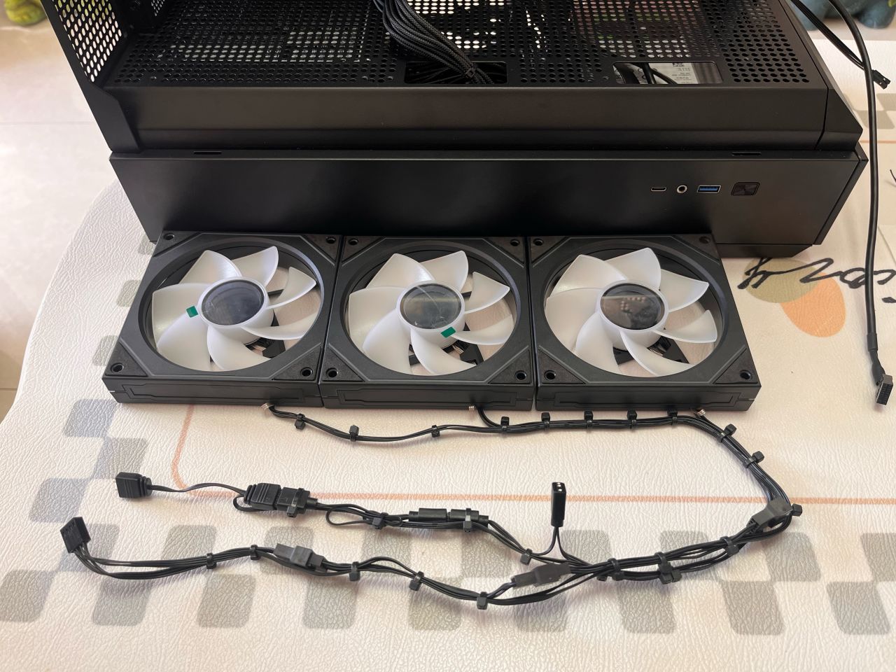 其二是因爲板子led接口夠用,所以沒買集線器,風扇轉接口有點凸出來比較難看,換集線器就很乾淨了,不過沒這個必要,反正背面也瞧不着,自己接的什麼線是什麼都記的清清楚楚,維護起來簡單方便就行了.