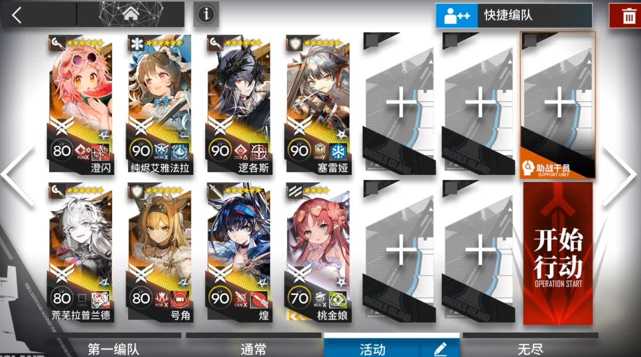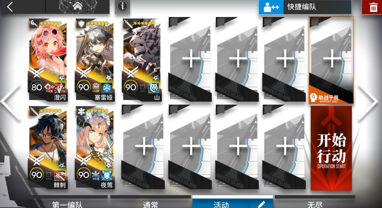 依次部署先鋒,粉毛朝右,拉普朝右,2人全圖打手推道具,不然用特種。2人技能好了立刻開。突襲很多小怪會讓推球速度慢,可能特種速度還快一點,先推下面的裝置,費用夠了再推上面的。