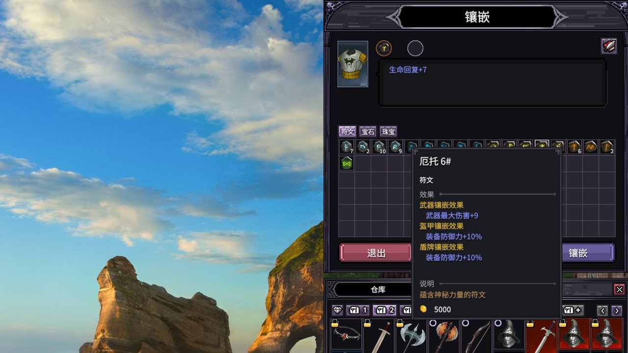 對於一些非獨特的普通裝備,也可能在掉落時擁有自己的鑲嵌孔,配合鑲嵌功能,它也將發揮獨特的妙用。按照特定的順序將符文插入鑲嵌孔中,可以使其進化到不朽裝備的水平,並擁有獨特的屬性效果。除此之外,還包含升級、打孔、移除鑲嵌、合成等功能,具有非常大的自由度。