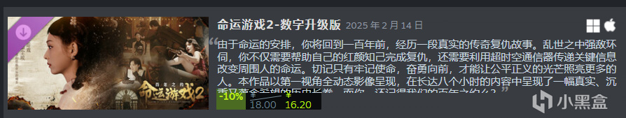 《命運遊戲2》這款以民國傳奇復仇故事爲題材的真人互動影遊,在我看來整體質量還是比較不錯的,對這類遊戲感興趣的小夥伴們可以關注一下這款遊戲。