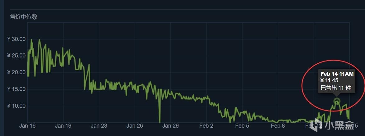 上圖即爲《命運遊戲2》金寶箱I的價格走勢。現在的價格和遊戲上線初期肯定沒法比了,但相對於第一期集卡活動結束前的那幾天(2月10日前後),目前金箱子的成交價格和成交數量都有了較大幅度的回升。如果你和我一樣,是《命運遊戲2》首發入手的玩家,並且每天堅持進遊戲領箱子,那麼現在應該已經回本了,接下來再出的金箱子就屬於是純賺Steam餘額了。