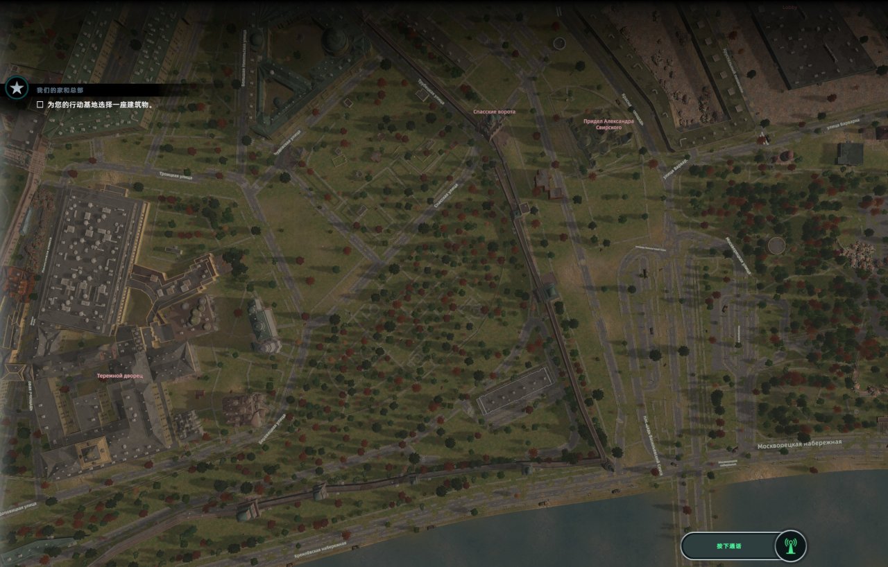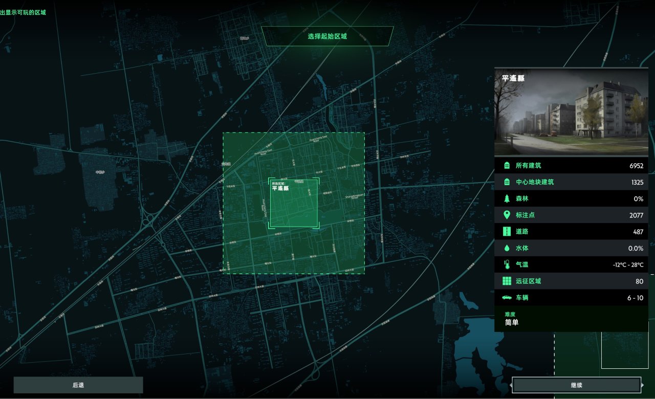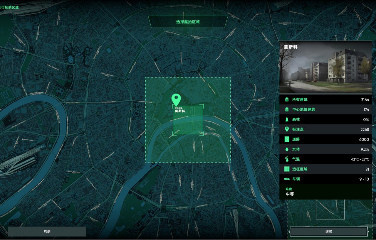 墙内建筑多且大,还有大量树木。城区建筑较密集,东部有大片树林可供后期开发