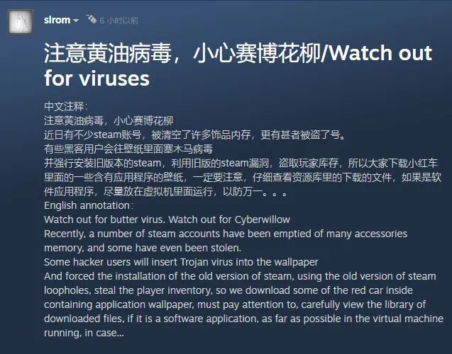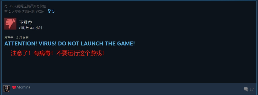 不过也有可能是开发者的Steamworks被盗号了,游戏被替换成包含病毒的版本。