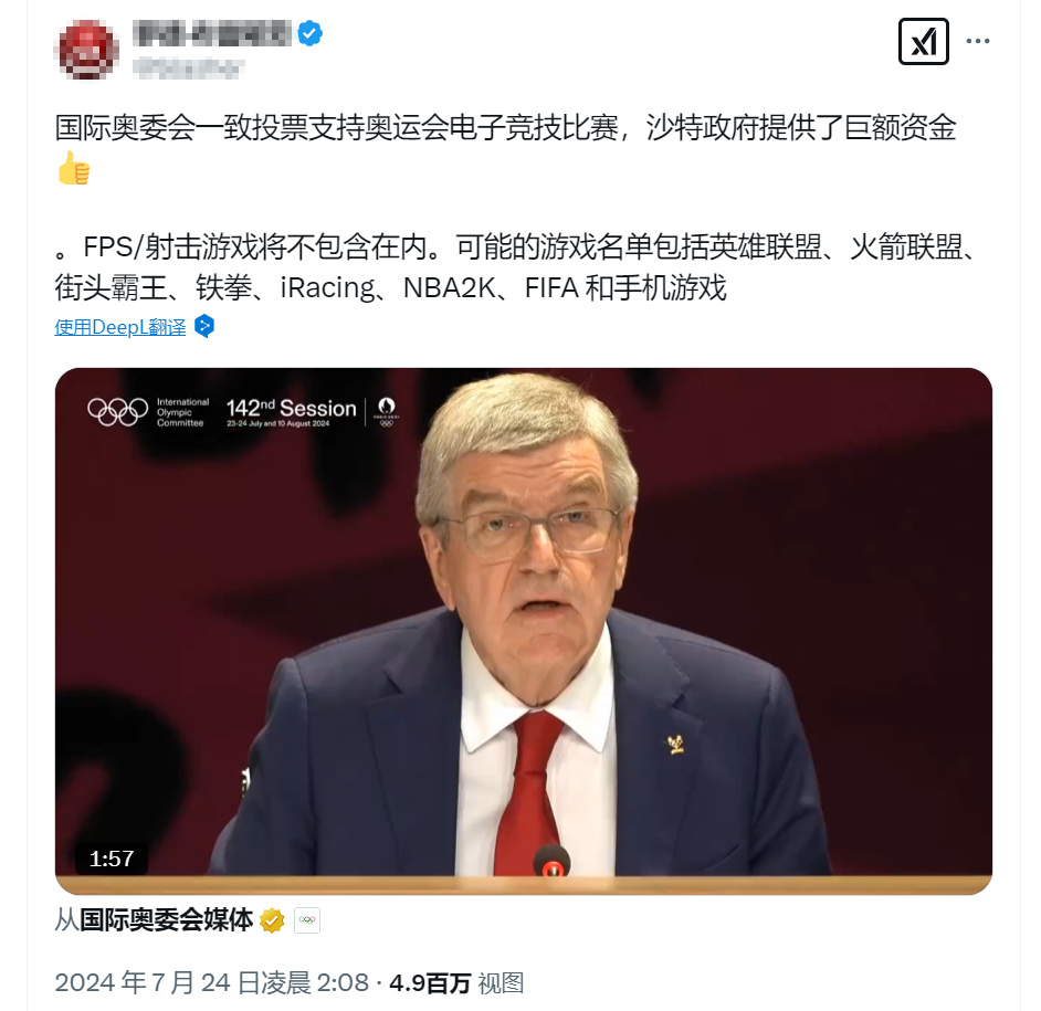 在2024年7月,國際奧委會就在第142次全會中,確認首屆電競奧運會將於2025年在沙特阿拉伯舉辦。