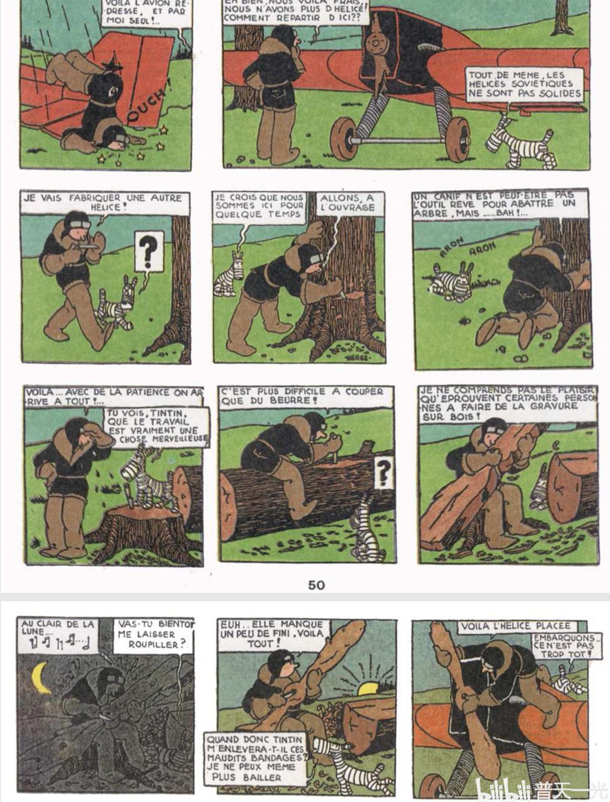 最后要谈的就是这一作的美术风格。相信通过以上的漫画节选,大家也发现了:这一时期埃尔热笔下的丁丁还相当粗糙,系列一贯的美术风格还没有形成,正如上文所提到的,正因为这一作没有经过埃尔热的重制,因而才保留了最初的画风,与系列其他作品在视觉上显得大相径庭,