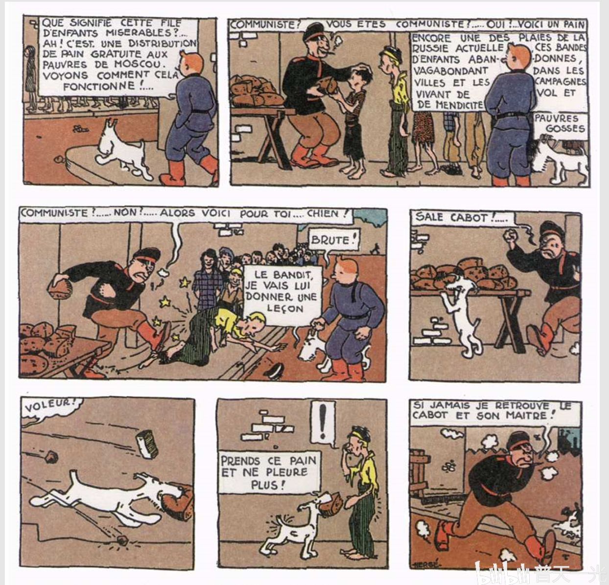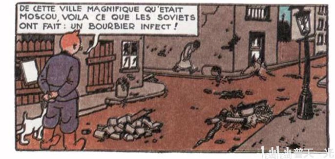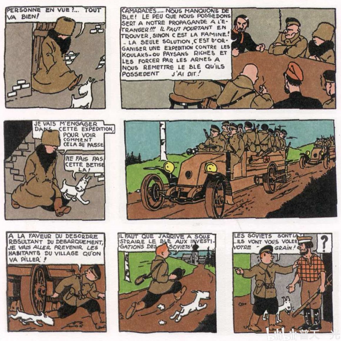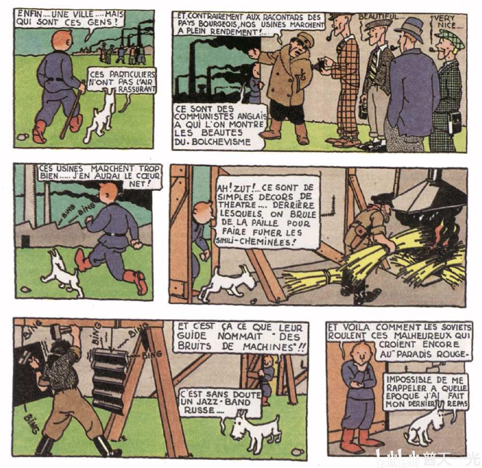 通过这几个例子已不难看出,《丁丁在苏联》可谓是一部十足的反苏宣传漫画,尽管苏联历史上确实进行了严酷的统治与虚假的宣传,但就这部漫画的内容而言,还是有夸大的成分。