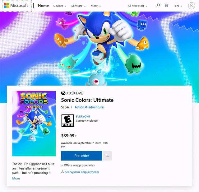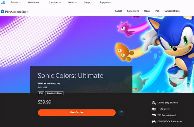 在今日的索尼克30周年直播发布上,世嘉正式公布了《索尼克:色彩终极版》,并宣布游戏将于今年9月发售。在直播活动结束后,《索尼克:色彩终极版》预购同时上架各平台商店。游戏实体版预购还将赠送儿童索尼克钥匙挂件,其中游戏数字版预购已登陆Epic商店、微软商店以及PS商店。