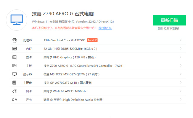 最後,鈦雕2T固態硬盤的表現也非常令人滿意,高達7021MB/s的讀取和6656MB/s的寫入,足夠應對各種遊戲場景。這套13700K+技嘉Z790 AERO G設計師的組合足夠應對我的各種使用需要了,接下來就只剩下顯卡的升級了,讓我繼續糾結下4080還是4090呢!