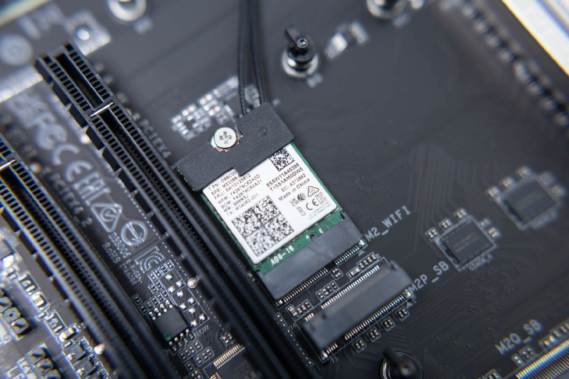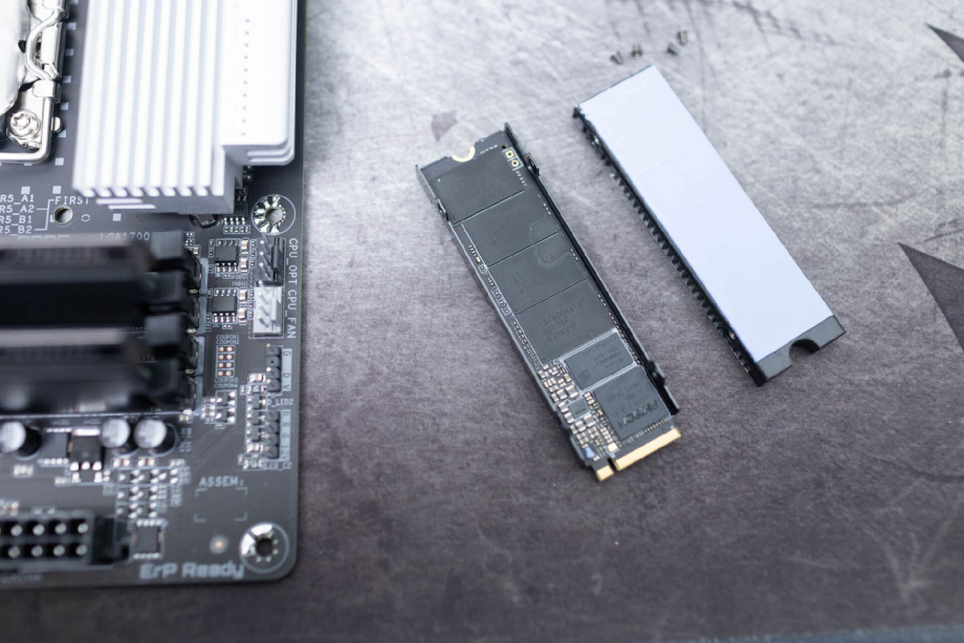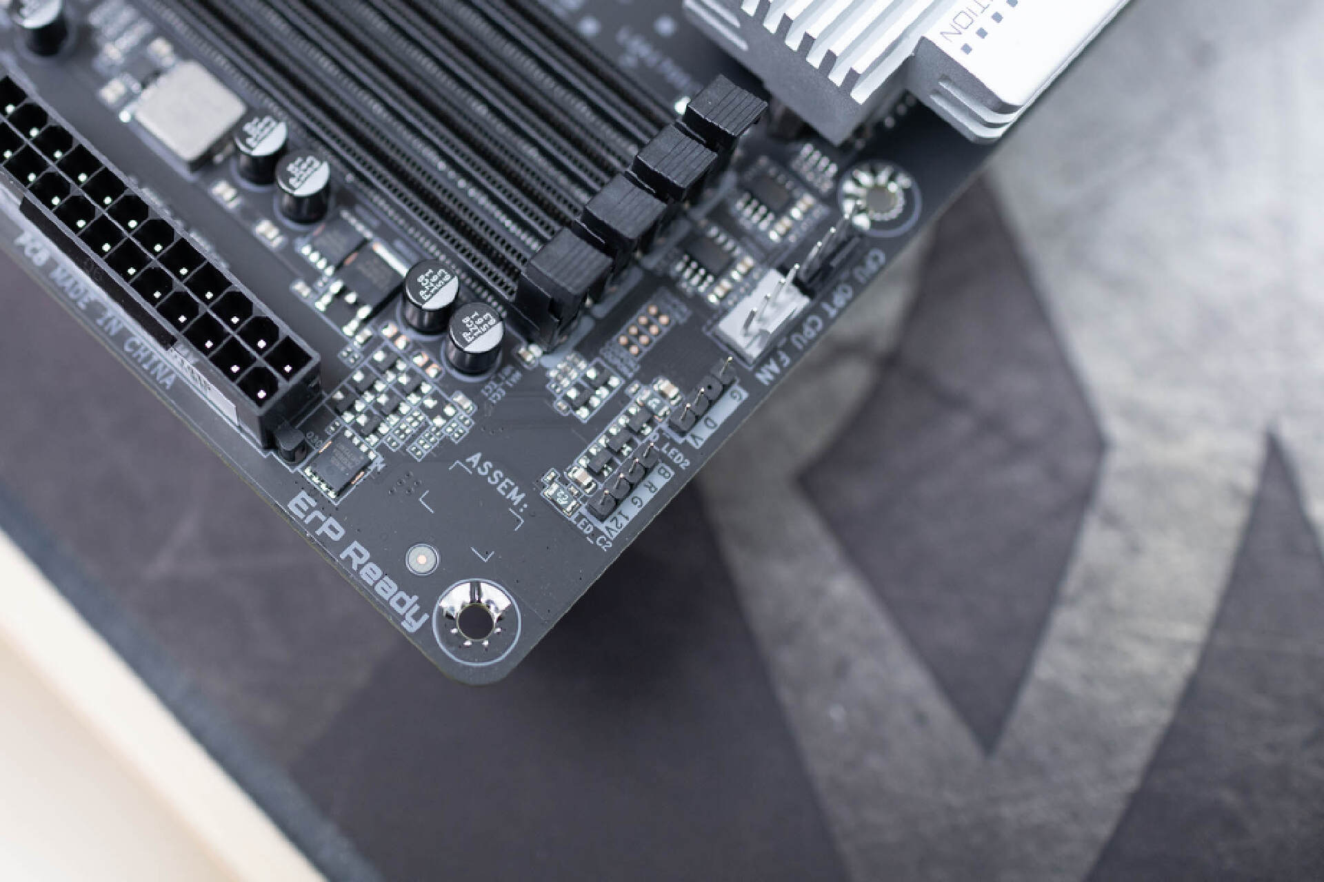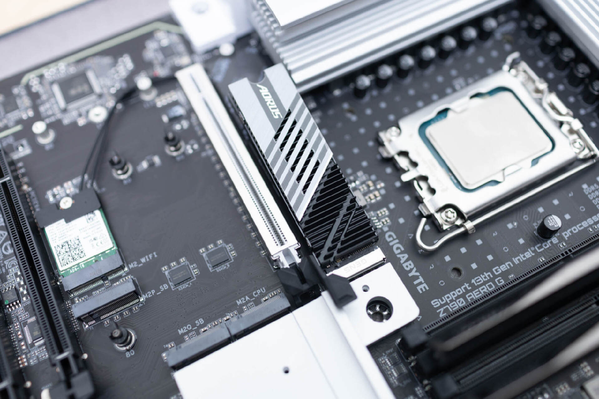 安裝上主板自帶的硬盤散熱器後,真的非常霸氣。自帶的散熱裝甲側面平整,和顯卡插槽之間保留了充足的間隙。
