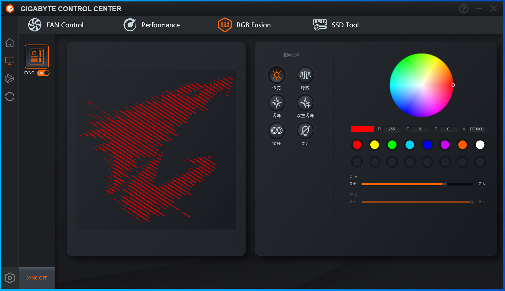 內置的技嘉RGB Fusion是支持全面手動調整的,你可以套用預設,也可以進入每個RGB接口進行微調,可玩性和燈效表現非常強,你可以輕鬆定製出自己的個性化機箱效果。