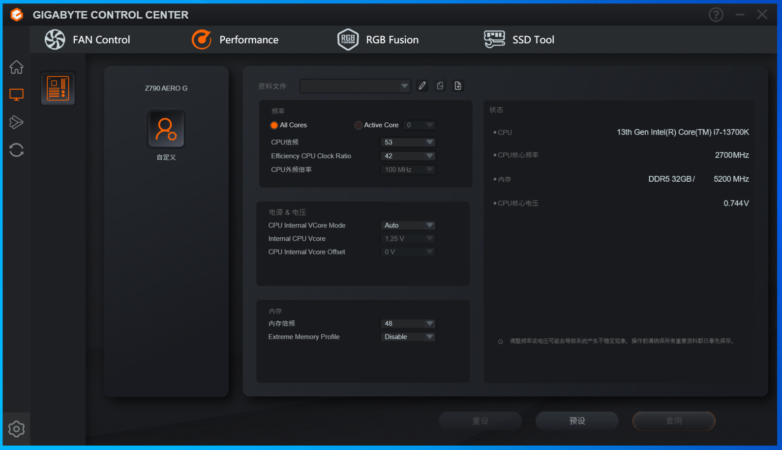 而讓最讓我驚訝的是,你在GCC中甚至還能直接調節CPU,內存的參數來進行快速超頻。