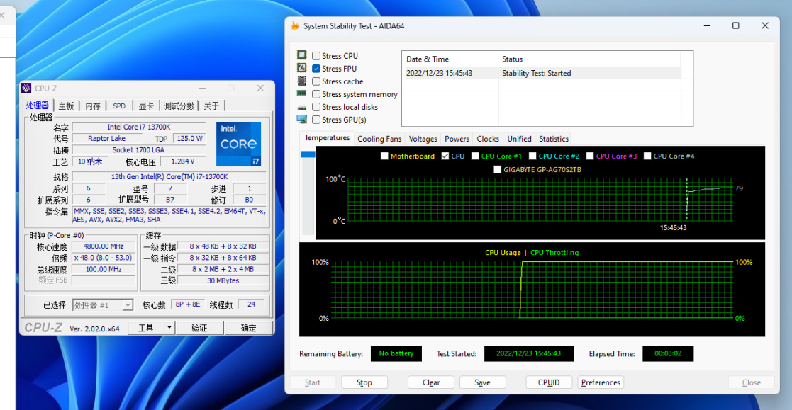 單烤測試,13700K+技嘉Z790 AERO+360水冷,可以被壓制在80℃以下,官方TDP125W,烤機過程中最高功耗213W,算是合情合理。