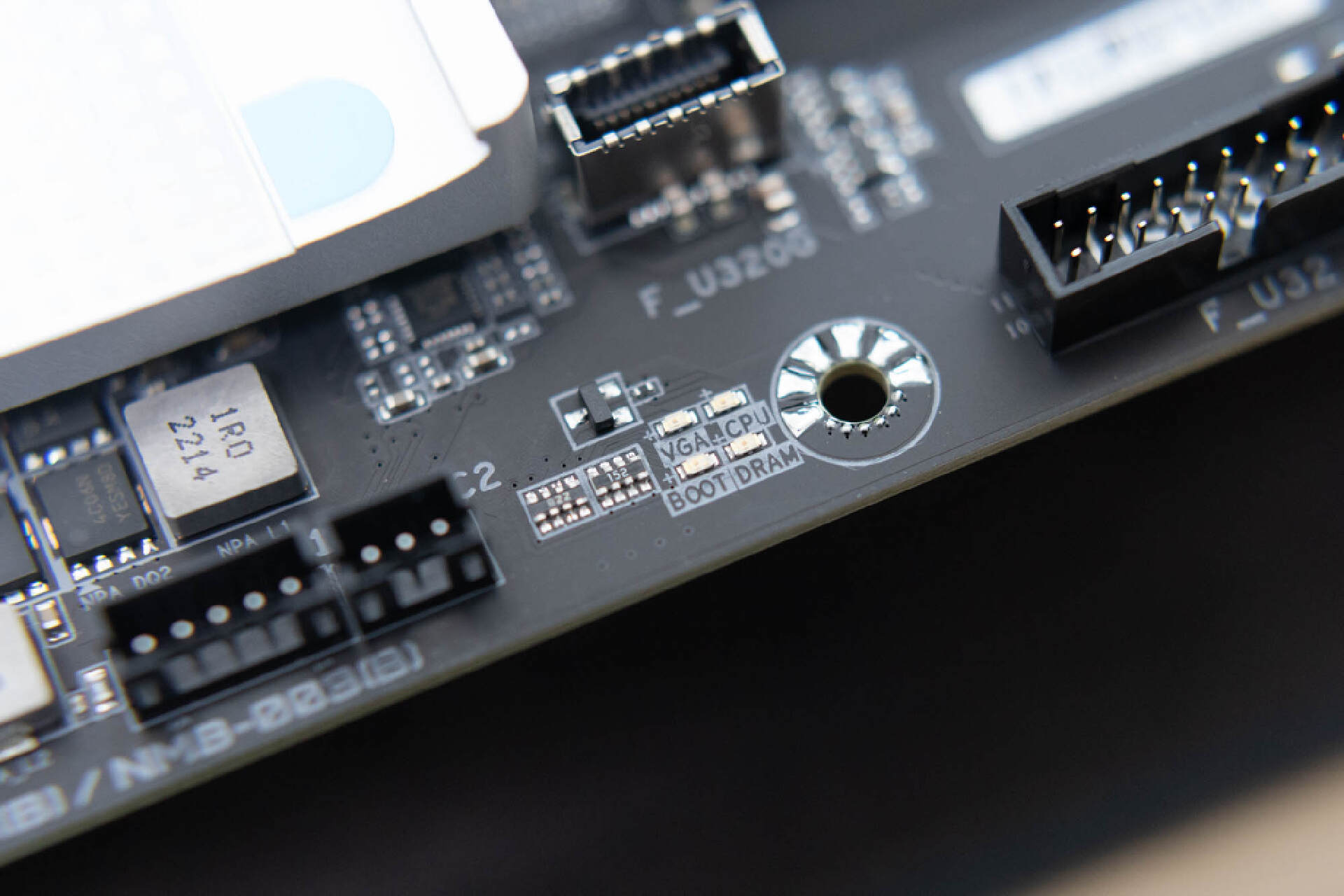 技嘉Z790 AERO G主板在電源接口側邊還提供了經典的4*糾錯燈,可以讓玩家直觀的看到主板上各個模塊的自檢狀態,對經常需要拆裝的DIY用戶來說真的非常實用。