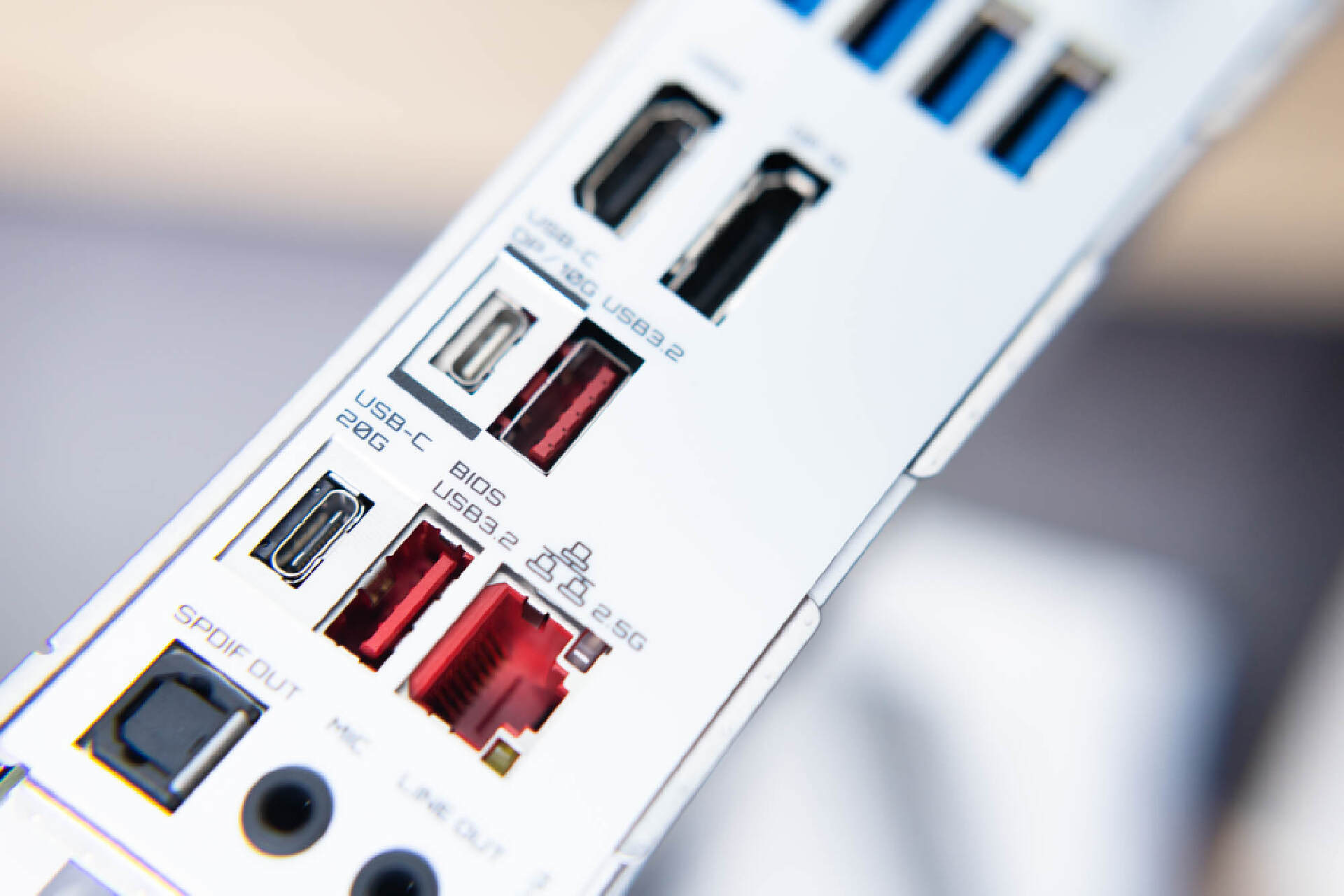 主板背部的IO模塊採用了一體面板設計,接口配置非常的豐富,視頻方面配置了HDMI2.1和DP1.4,USB接口提供了2個USB2.0,4個USB3.2 Gen1和2個USB Gen2,TYPE-C接口也有兩個,其中一個還加入了VisionLINK支持。網絡接口方面提供了WIFI 6天線接口和一個2.5G網口。音頻接口方面提供了獨立的輸入,輸出和光纖接口。