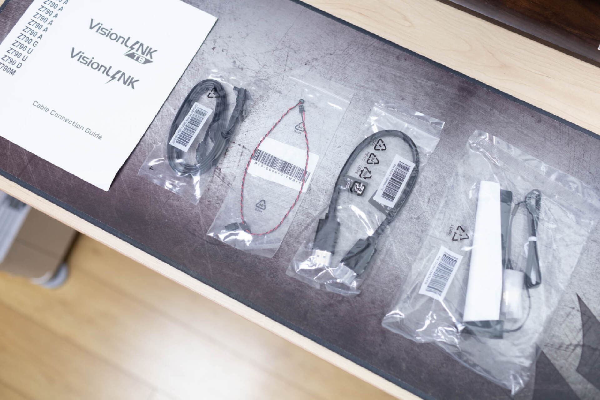 配件方面,技嘉Z790 AERO G還提供了一個白色的鯊魚鰭WIFI天線模塊,可以用來增強主板WIFI信號和藍牙信號,一根適配VisionLINK接口的DP短接線,一組SATA數據線,一根報錯蜂鳴器和一組說明書質保卡。