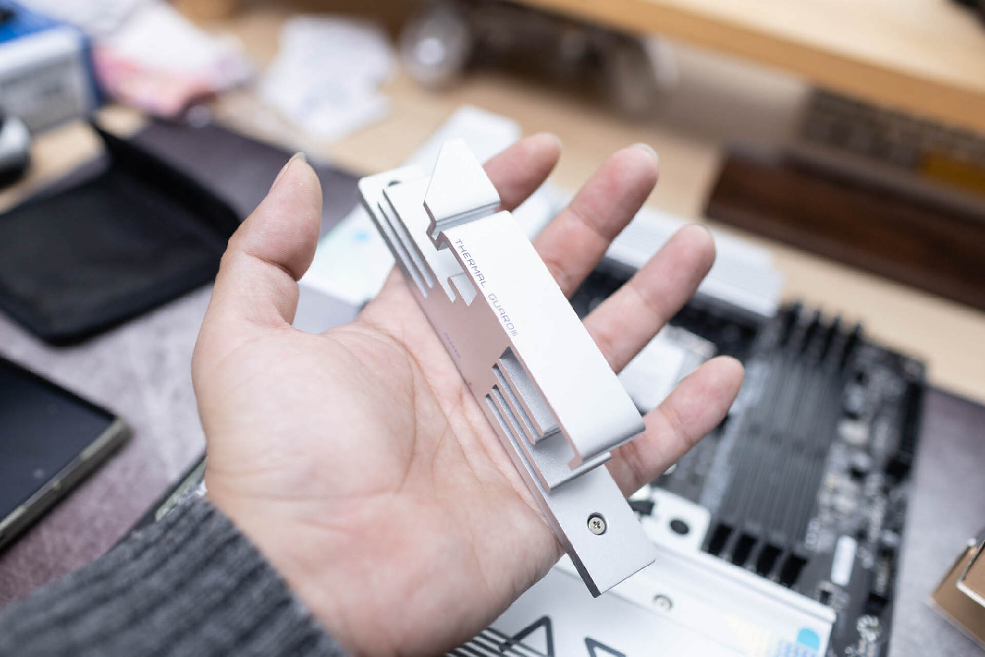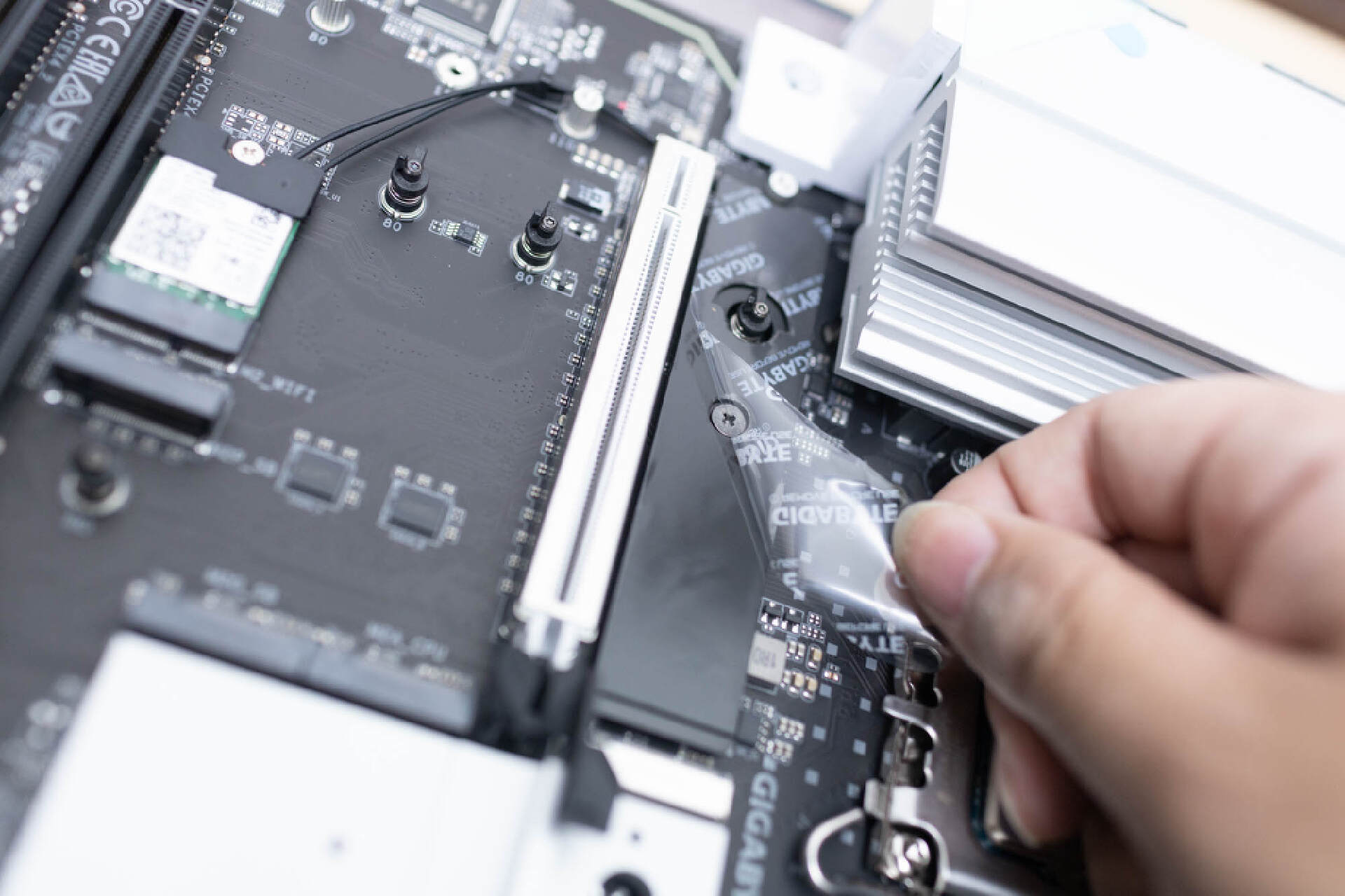 安裝硬盤前,要注意先撕掉散熱貼上的保護膜。