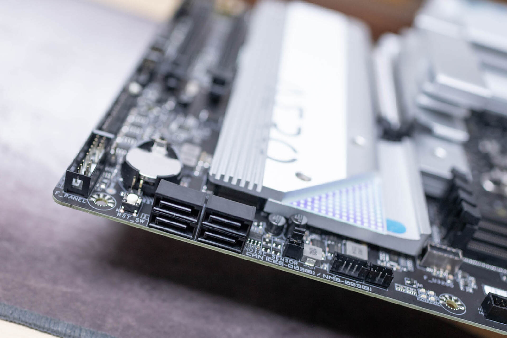 主板的側邊提供了4個90度側裝的SATA接口,全部都是原生接口,無需擔心交叉佔用的情況。