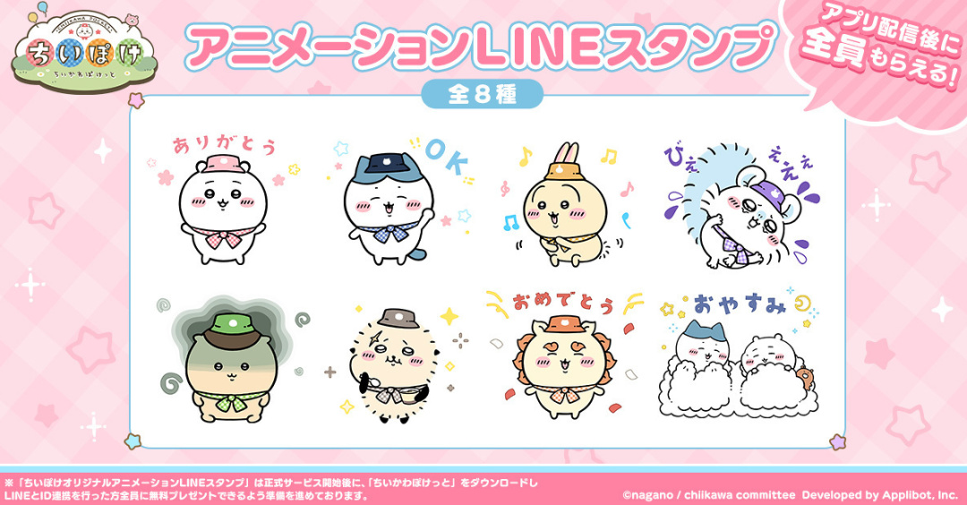 此外,官方宣佈《吉伊卡哇Pocket》的預約人數突破100萬人,並決定在遊戲上線後,向所有玩家免費贈送“吉伊卡哇Pocket原創LINE貼圖”。官方首次公開了該貼圖插圖,包含全8種設計。