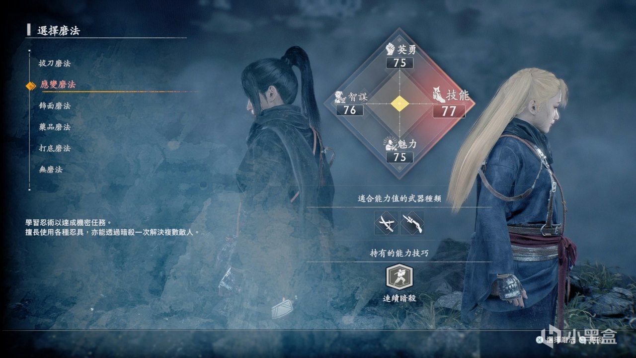 磨法即初始角色属性的选择,但是《浪人崛起》没有点数分配,累积经验升级只会获得技能点来学习不同系统的技能,不同磨法的分别就只有初始获得的技能不同,后续都可以在游戏升级、解收集获得技能点全部学到