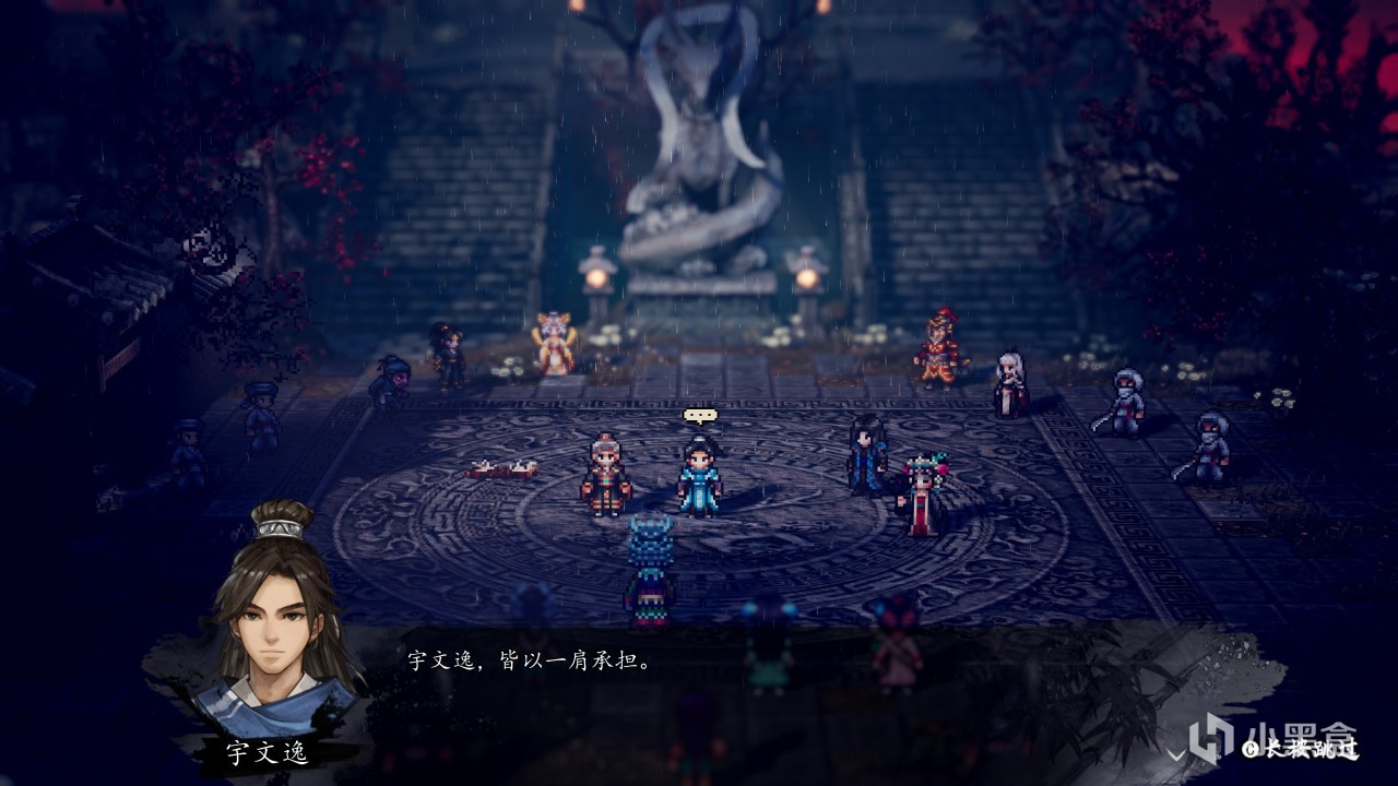 遊戲的劇情圍繞着主角宇文逸以及他的隊友,講述了一個相當標準的王道武俠故事。劇情上的優點非常多,比如跌宕起伏的故事情節,豐富有趣的支線設計,爽度拉滿的劇情發展,入木三分的羣像塑造。而在這其中最突出的,則是主角“宇文逸”的成長。