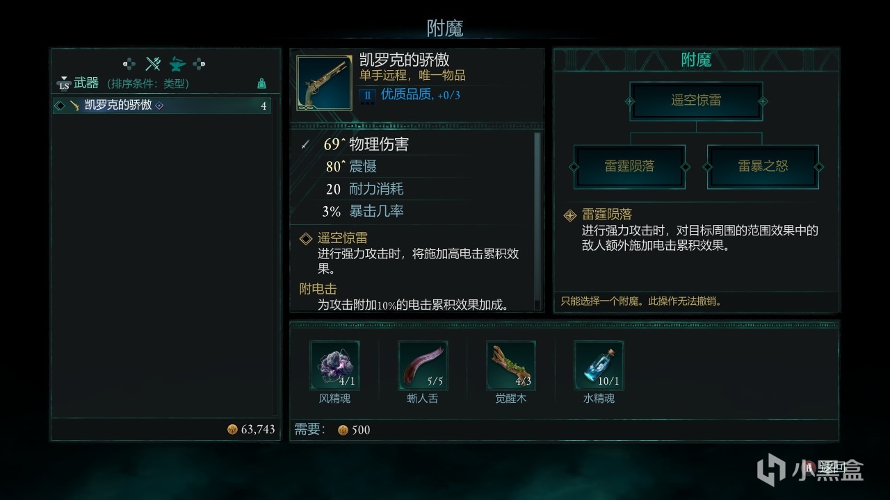 然后虽然系统整体简化了,但《永恒之柱》系列最让我喜欢的独特装备系统还是得到了保留,装备可以靠收集的材料完成升级和附魔也带来了更多的养成感,唯一的问题大概在于特喵的材料需要太多了,有一些比如植物素材可以购买,但是更多材料尤其是各种木头奇缺,只能靠商店刷脸和拆武器,无论哪种都感觉有些亏。