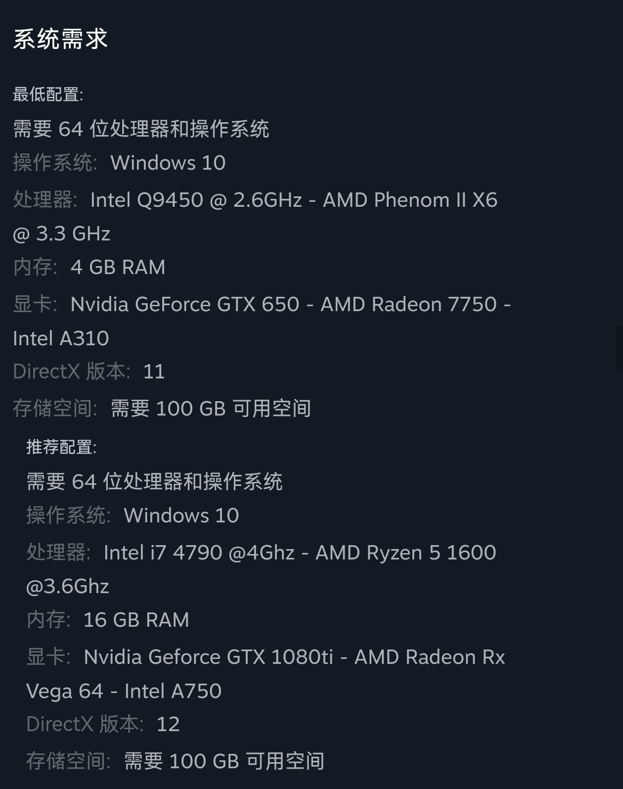 游戏配置要求: