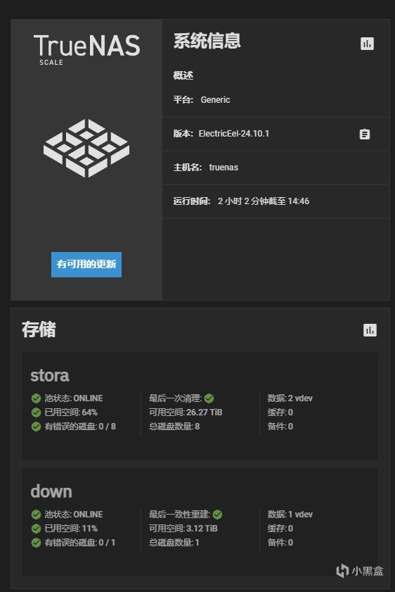 又瞭解到trueNAS,和PVE,就決定上着一套,trueNAS在存數據上很穩定,至少我係統炸過好幾次文件存儲都沒出任何問題,需要在NAS上實現的功能完全可以用虛擬機來實現,NAS不跑任何業務。