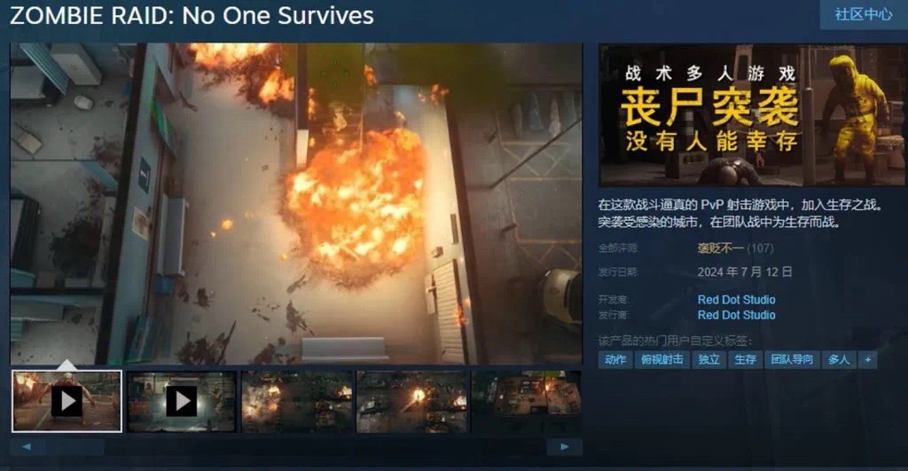 而另一款由獨遊團隊Red Dot Studio開發的《ZOMBIE RAID:No One Survives》則是更加純粹的俯視角射擊遊戲。這款遊戲包括玩家協作打喪屍的PVE玩法以及團隊競技、喫雞的PVP玩法。