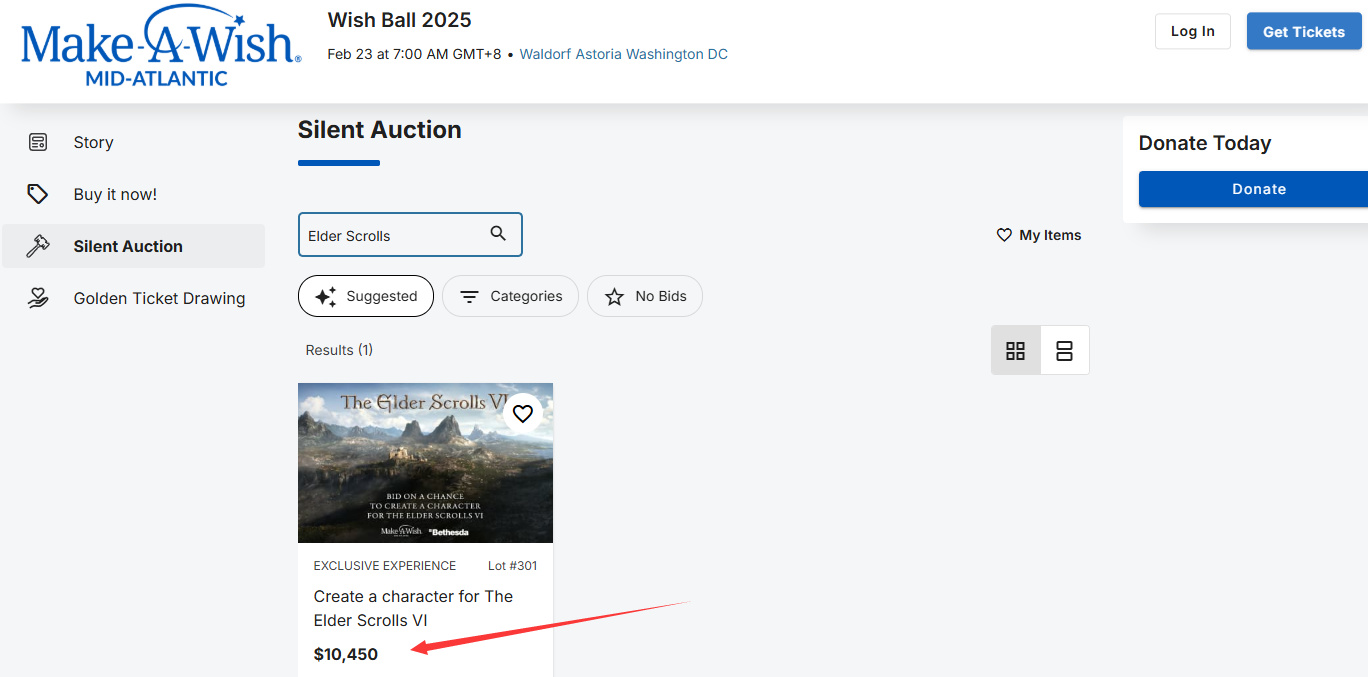 在拍賣會的聲明中提到:“向所有遊戲玩家和奇幻作品粉絲髮出號召,這可是一生僅一次的機會!!!能讓你在有史以來最受期待的電子遊戲之一《上古卷軸 6》中留下永恆印記!”