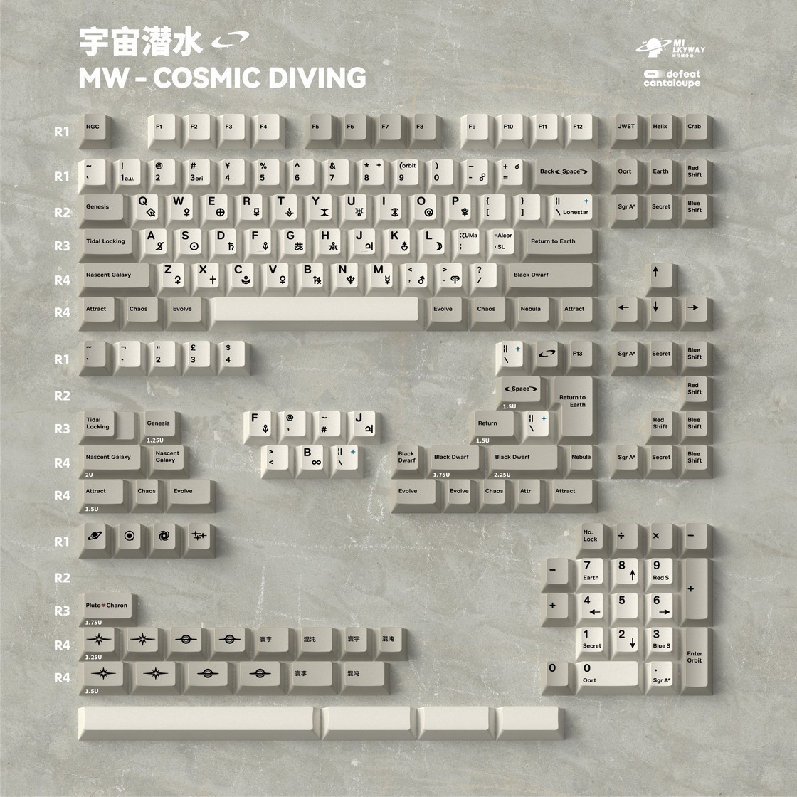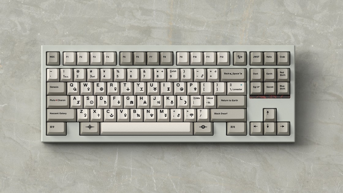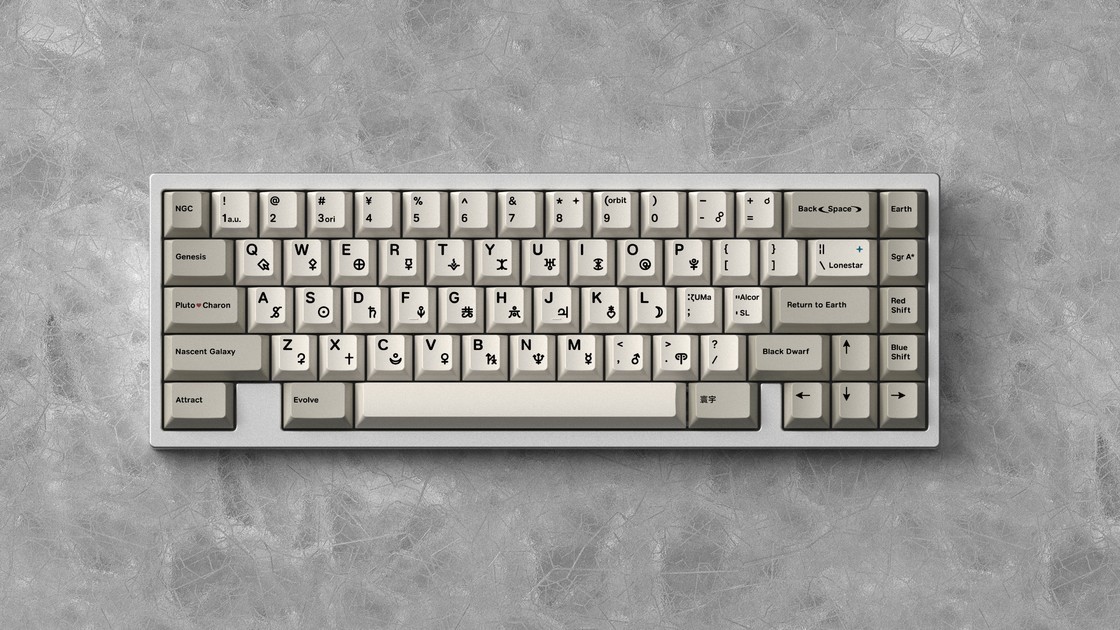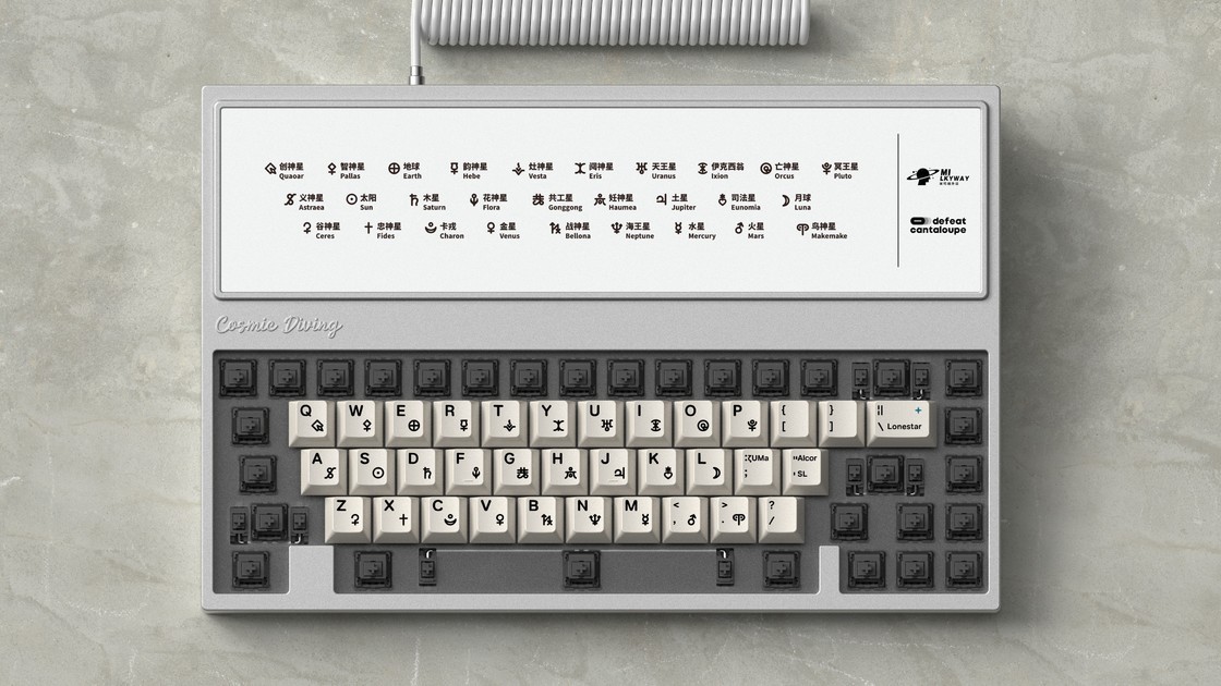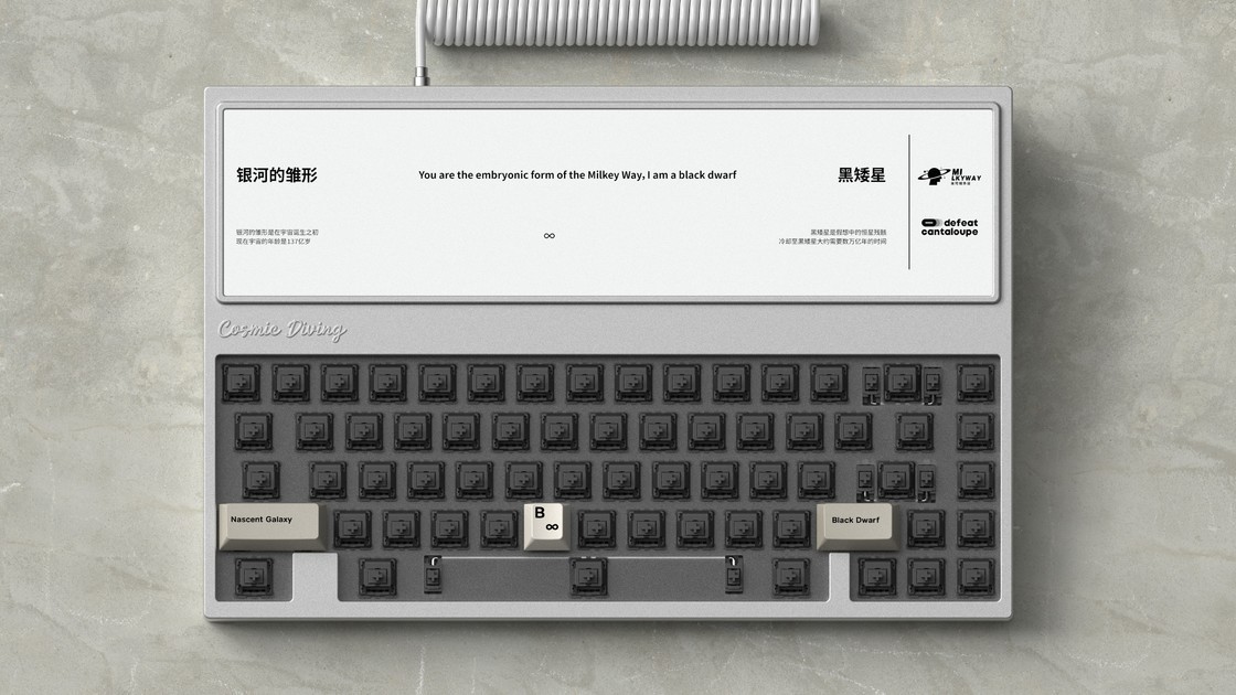 这款键是由设计师「番茄」设计的一款天文主题键帽——Cosmic Diving 宇宙潜水。也是这位设计师的首款键帽设计,这款键帽在九月份时已经进行了IC,由米可维代工,听到这个消息时我是有些失落的,因为米可维欠的键帽实在是太多了,不过前几日的GB表示将以现货形式出售,倒是缓和了一些。