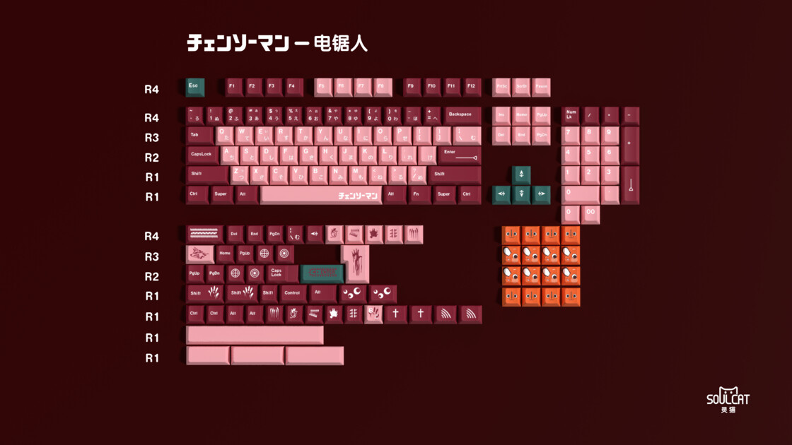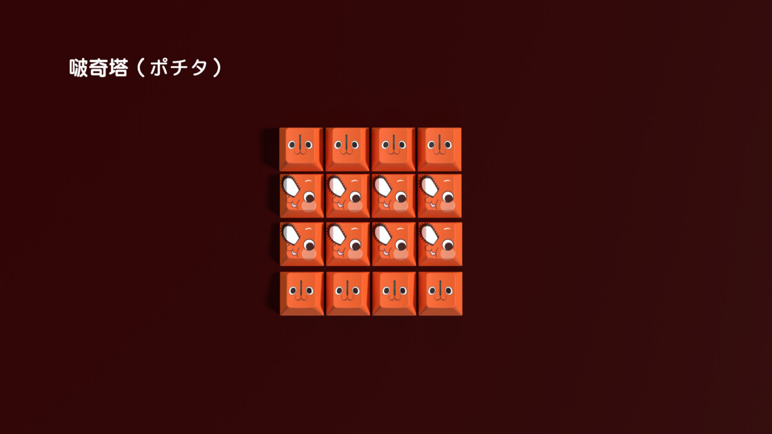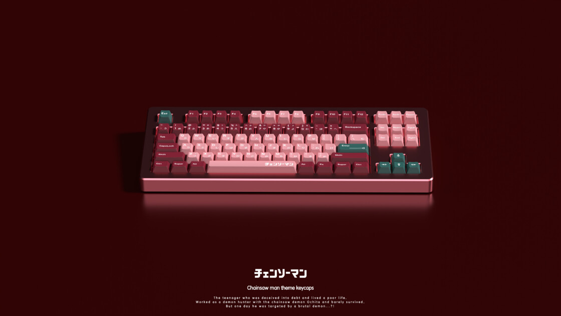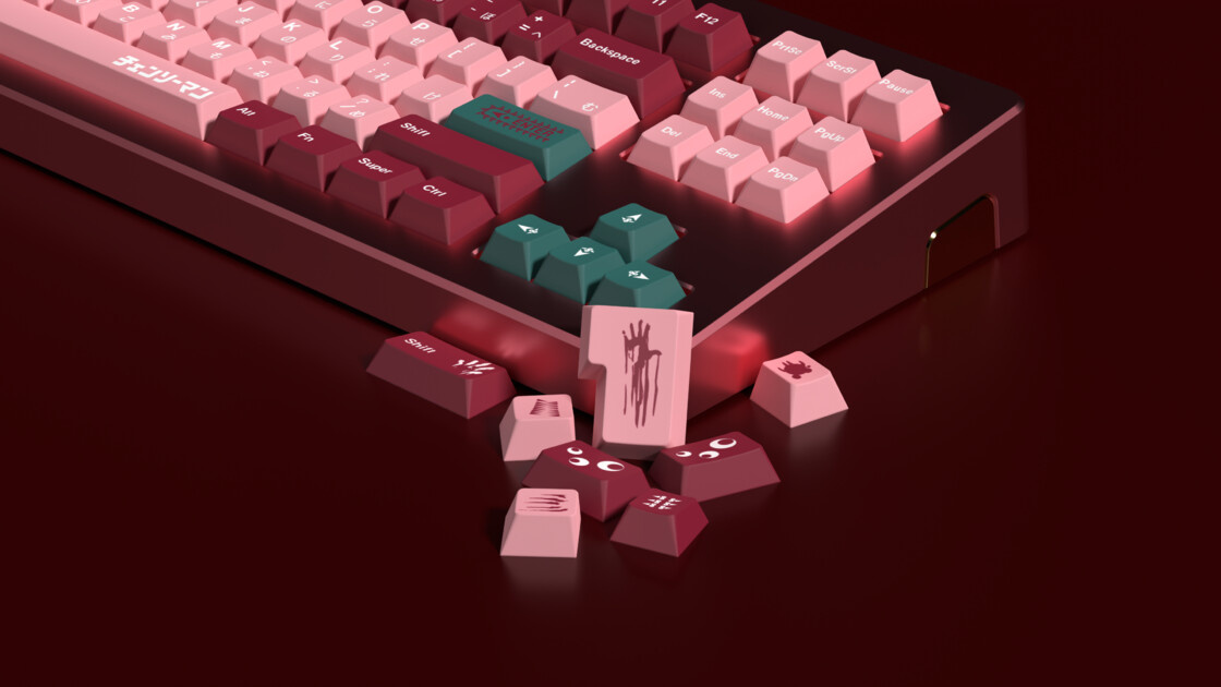 这款键帽是由灵猫工作室自己的设计师老魏设计的一款二次创作主题键帽——电锯人。随着电锯人动画的上映,抛开动画改编的好坏,这部作品的热度可以说是达到了一个空前的高度。