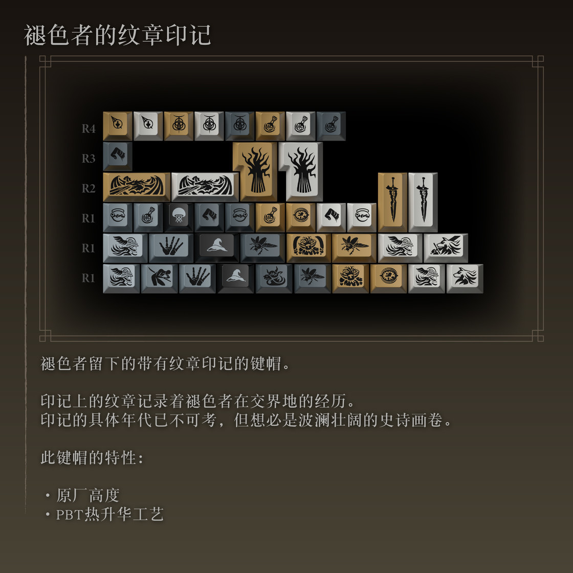 这款键帽的灵感来源于一款游戏——《艾尔登法环》。这款游戏也是荣获堪称游戏届的奥斯卡The Game Awards的年度游戏大奖。
