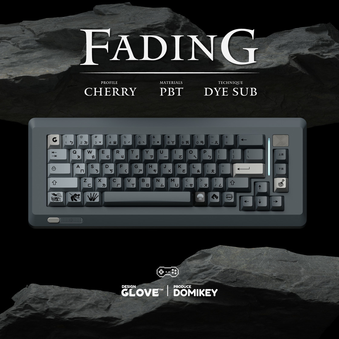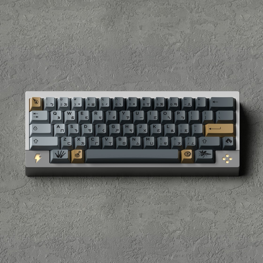 这套键帽是由「GLOVE STUDIO」的设计师手套设计的二次创作主题键帽——FADING ,这位设计师也是经常出现在我的专栏里,设计水准很高的一位设计师,有不少好设计出自他手,感兴趣的可以看我往期文章中对这位设计师的作品的介绍。