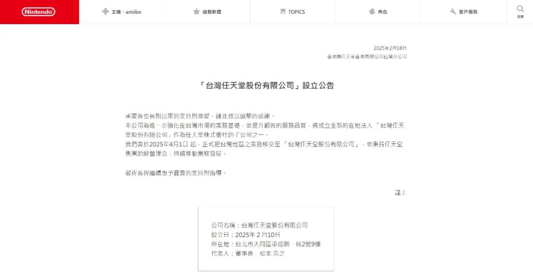 臺灣任天堂經歷了子公司模式到代理商模式多年後,任天堂今日宣佈再次開設臺灣任天堂分公司,4月1日起,香港任天堂將移交相關業務。