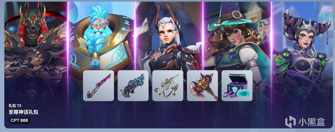 至尊神話禮包(888r):5個滿級神話皮+4個神話武器+100神話棱晶