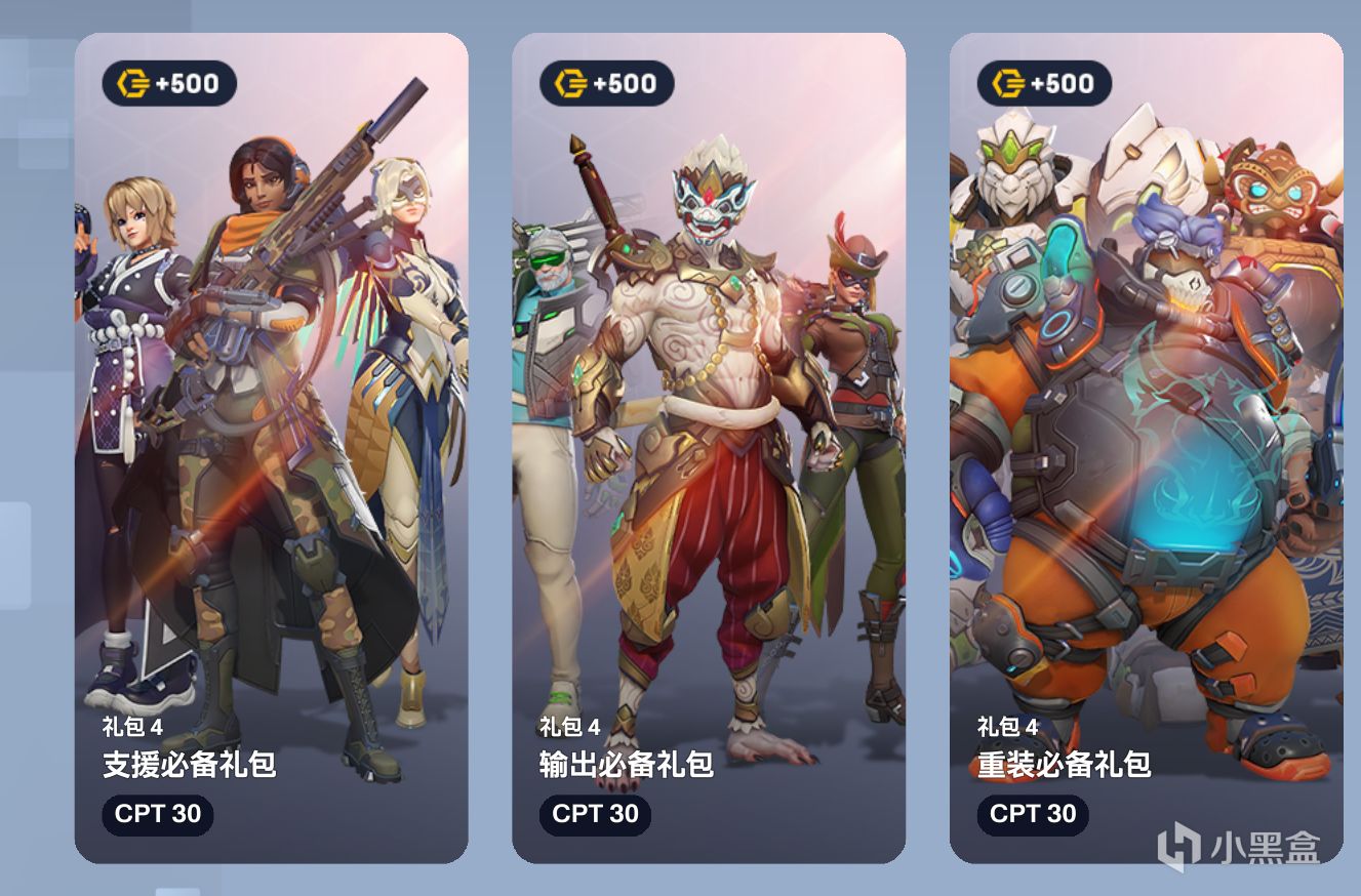 2.職責必備禮包(30r/個):三款皮膚+500金幣【任意購買兩個禮包湊1000金幣購買通行證更划算】