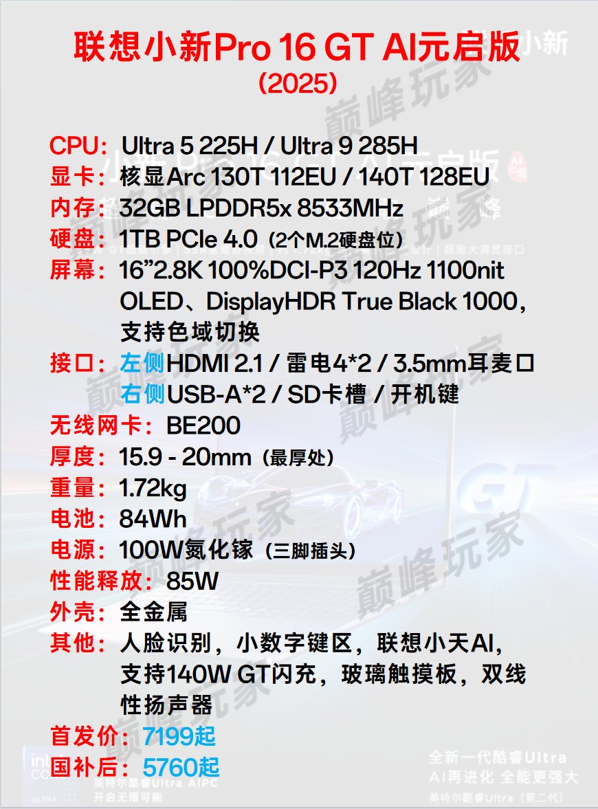 小新Pro GT AI系列,兩個機子模具與配置都挺好挺強的,同價位水桶輕薄本之一,但首發價明顯偏貴了,至少比我預期的貴了800元,儘管ta疊加國補後,到手價依然是在5000 - 6000這個小新Pro系列新機主流售價區間。