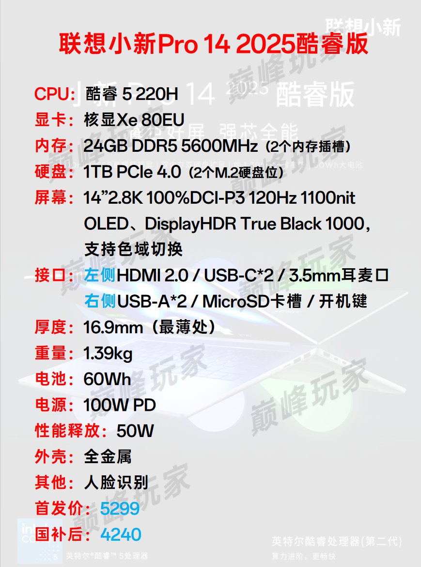 聯想小新Pro 2025酷睿版系列,4款新機,首發國補後4240起