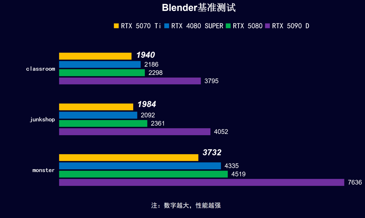 Blender 基準測試,RTX 5070Ti 落後4080SUPER 5%左右