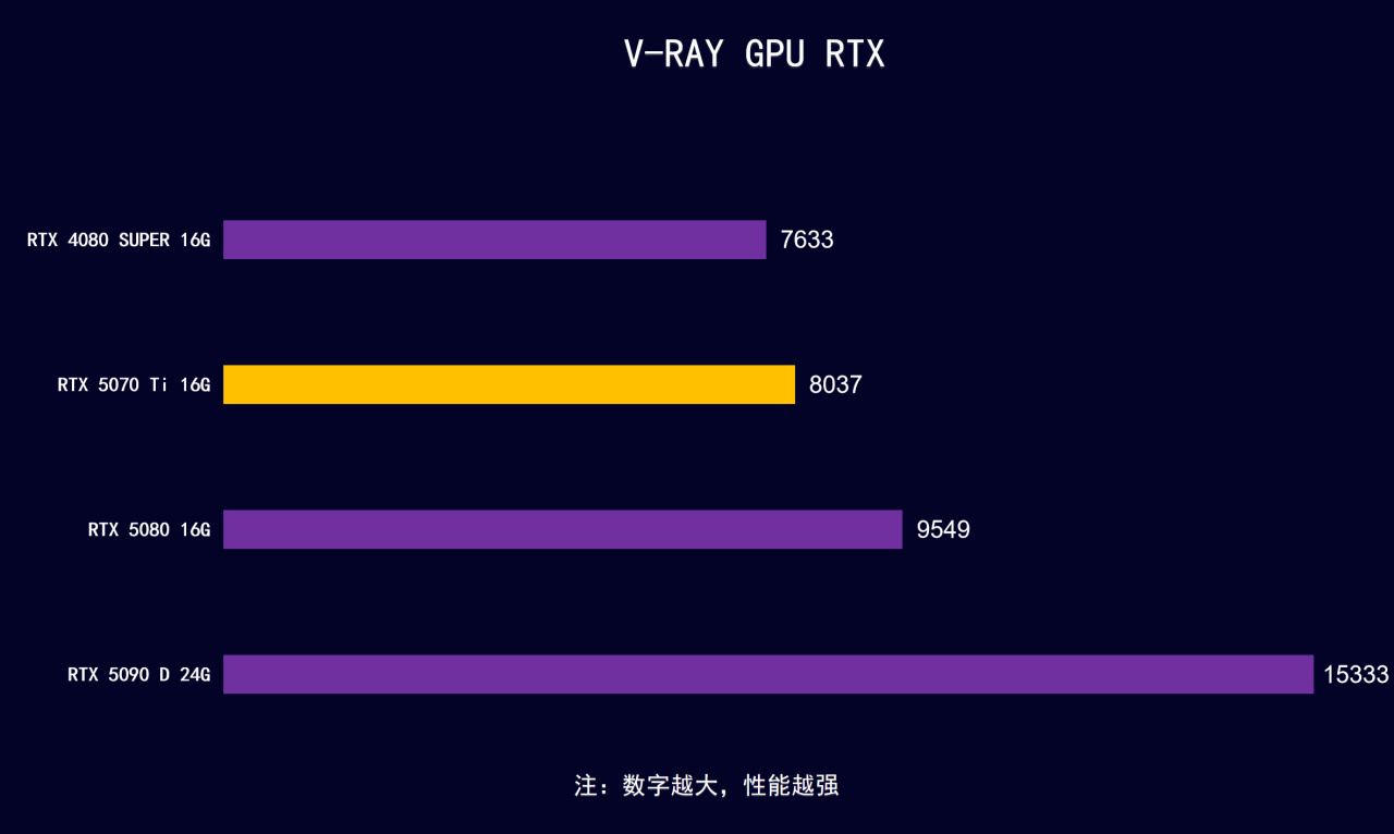 V-RAY GPU RTX測試,RTX 5070Ti 領先4080SUPER 5.3%, 落後5080 18%左右