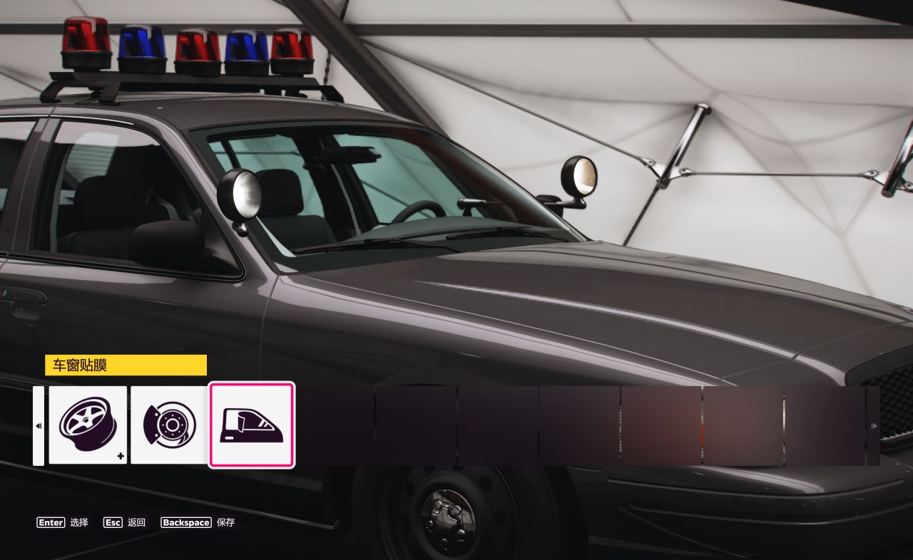 在車庫主頁選擇 設計與塗裝 - 塗裝車輛 - 車窗,改變其顏色並保存即可。