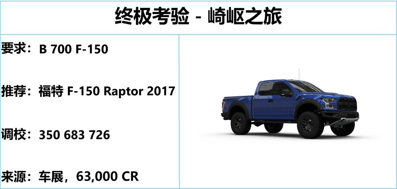 本週的特技要求一致,每週挑戰的福特 SVT Cobra 繼續用就行,調校等級剛剛好。