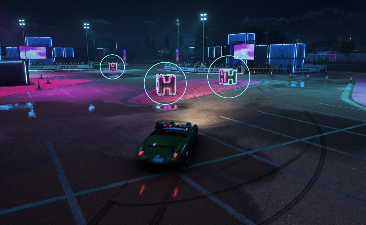 霓虹跑道位於左下角雨林中的廢棄機場內;燒胎技術:抵住車輛的前進和轉向,讓其原地打轉即可觸發燒胎,不間斷摩擦即可進階。