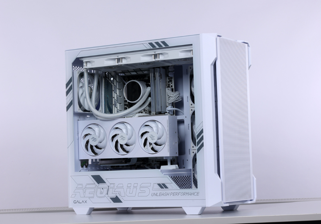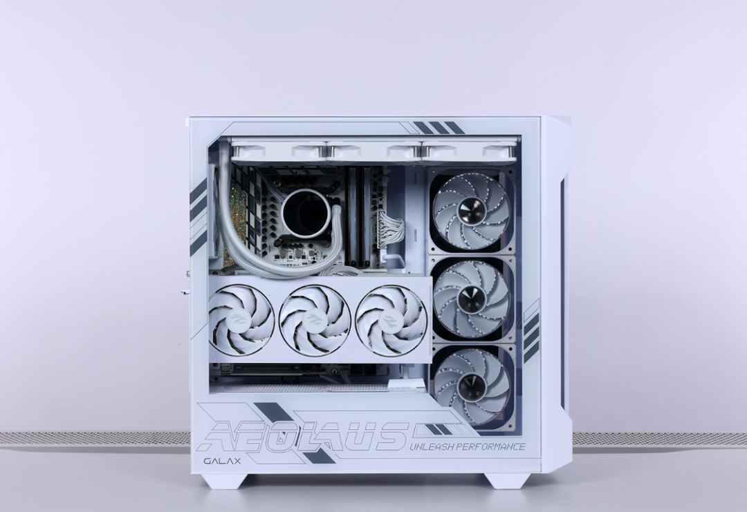 完整配置單:Intel Ultra 7-265K處理器、影馳星曜Z890星輝WIFI主板、RTX 5070Ti聖刃顯卡(影馳PCIe4.0顯卡延長線)、HOF Pro D5-7200MT/s 16G*2內存、星曜7000Plus 1T M.2固態硬盤、魅影360R白色一體式水冷、風神機箱(白色)、GL-850 ATX 3.1 金牌全模組白色電源、魅影 Phantom 白色散熱風扇*9(4正 + 5反)…
