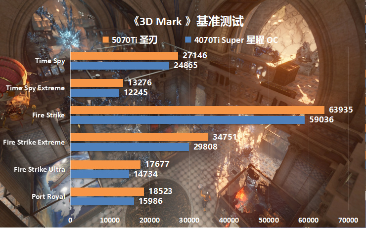 3D Mark基準測試,Time Spy測試,顯卡得分27146分,Time Spy Extreme測試,顯卡得分13276分,Fire Strike測試,顯卡得分63935分,Fire Strike Extreme測試,顯卡得分34751分,Fire Strike Ultra測試,顯卡得分17677分,Port Royal光追測試得分18523分;